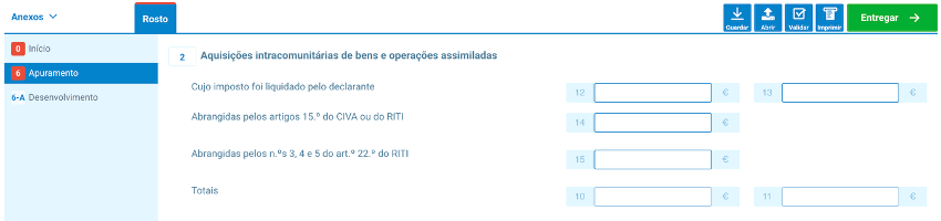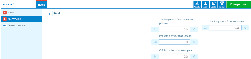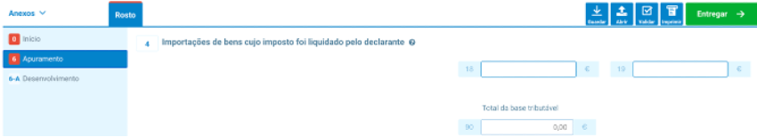 Nos campos 2, 6 e 4, insira os valores correspondentes ao imposto liquidado, discriminados pelas respetivas taxas.