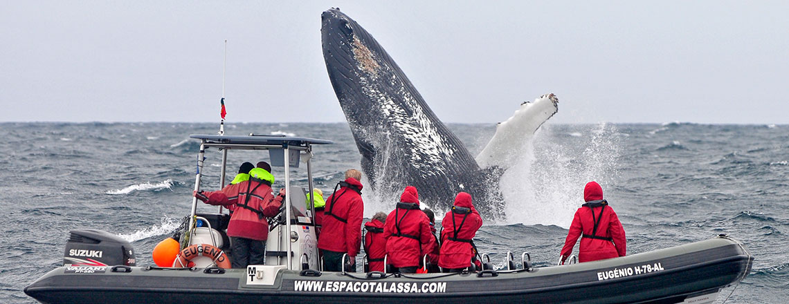Aproveite a oportunidade de observar de perto as incríveis baleias e golfinhos.