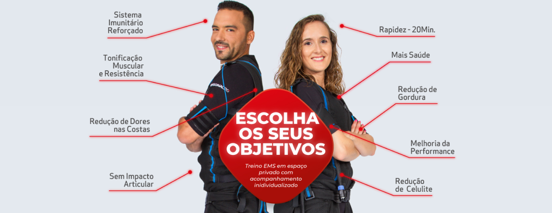 O conceito premium da Personal20 alia a tecnologia EMS (Electronic Muscle Stimulation) ao fitness resultando num treino de 20 minutos com resultados equivalentes a 90 minutos de treino convencional.