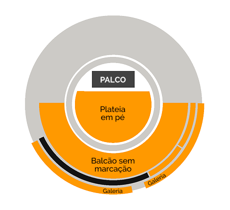 Os bilhetes atribuídos dão acesso à Plateia em pé, Balcão sem lugar marcado e/ou Galeria.