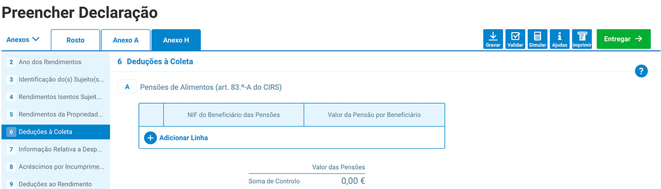 É neste quadro do anexo H que se declaram as despesas elegíveis para dedução à coleta.