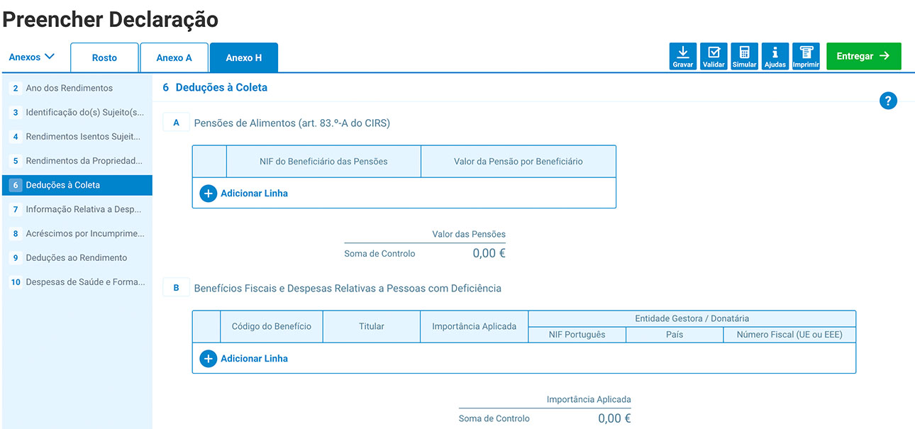 Serve para inscrever benefícios fiscais e despesas relativas a pessoas com deficiência. Para tal, proceda da seguinte forma: