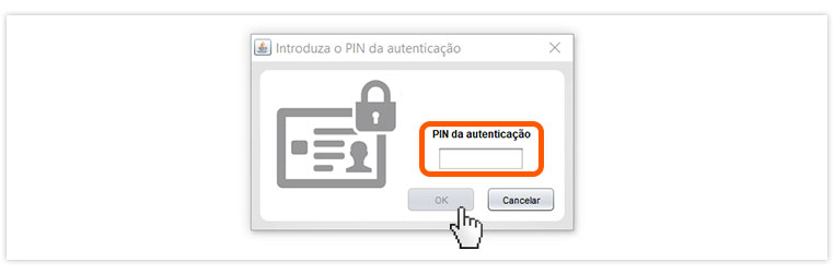 5. Insira o PIN de autenticação do seu Cartão de Cidadão e clique em “Confirmar”;