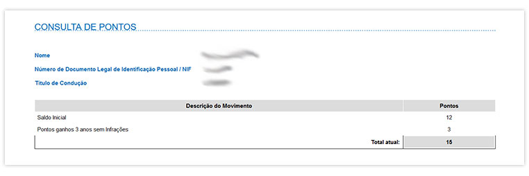 6. Se pretender verificar a descrição de movimentos dos seus pontos da carta de condução, clique em “Cadastro” e depois em “Consultar pontos”. A carta de condução por pontos entrou em vigor a 1 de junho de 2016, tendo sido atribuídos 12 pontos a cada condutor. Os pontos podem ser retirados, de forma cumulativa, em caso de contraordenações graves, muito graves e crimes rodoviários. Pelo contrário, a ausência destas ocorrências por um período de três anos implica um bónus: mais três pontos atribuídos ao condutor. Saiba quantos pontos perde se cometer uma contraordenação.