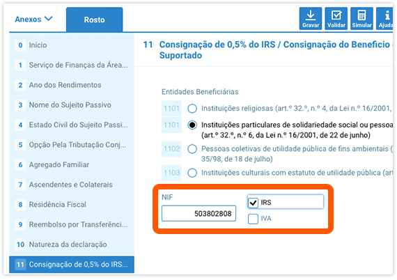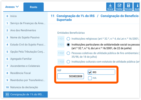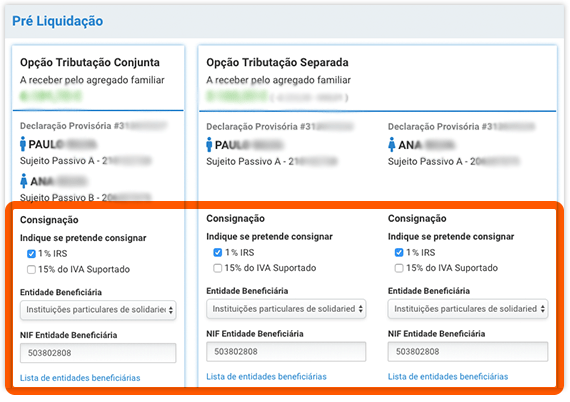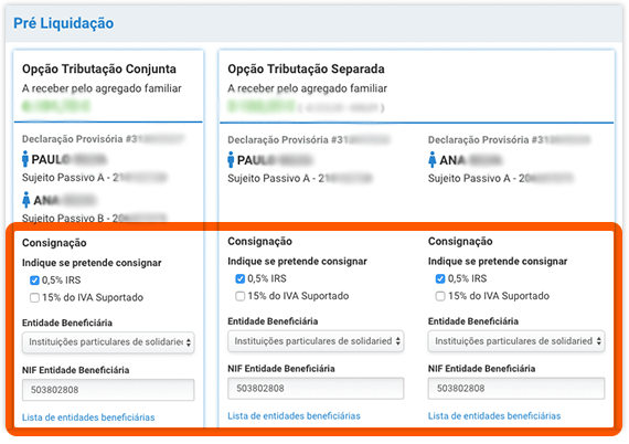 - O tipo de consignação: “IRS” ou “IVA” ou as duas.