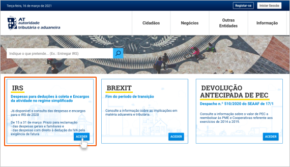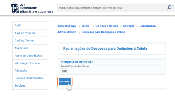 Entre 15 e 31 de março, fica disponível outra página de despesas para deduções à coleta, no Portal das Finanças, na área pessoal do IRS, que agrega as despesas comunicadas à Autoridade Tributária e Aduaneira (AT) através do sistema e-fatura, do recibo de renda eletrónico e de declarações anuais. Nesta nova página, pode consultar todas as despesas para deduções à coleta do IRS, incluindo as que não apareciam no e-fatura, como juros do crédito à habitação, refeições em cantinas de escolas públicas, rendas, taxas moderadoras ou propinas da universidade. Neste artigo, explicamos todos os passos que deve dar para consultar a página de despesas para deduções à coleta na sua área pessoal do IRS.