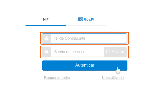 Faça a sua autenticação no Portal das Finanças. Para tal, insira o seu NIF e a sua senha de acesso. Se preferir, pode autenticar-através da Chave Móvel Digital ou do Cartão do Cidadão, clicando em “Gov.Pt”.