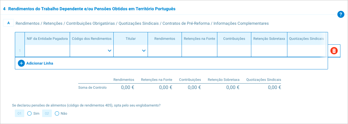 O progenitor que recebe pensão de alimentos tem de declará-la como rendimento. Para tal, deve preencher o quadro 4A do Anexo A, de acordo com os seguintes passos: