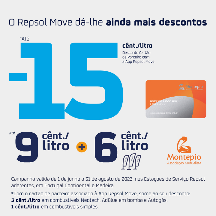 Utilize todos os descontos de combustível a que tiver acesso, seja em vales ou cartões de oferta. Os associados Montepio beneficiam de um desconto de até 15 cêntimos por litro em combustíveis Repsol.