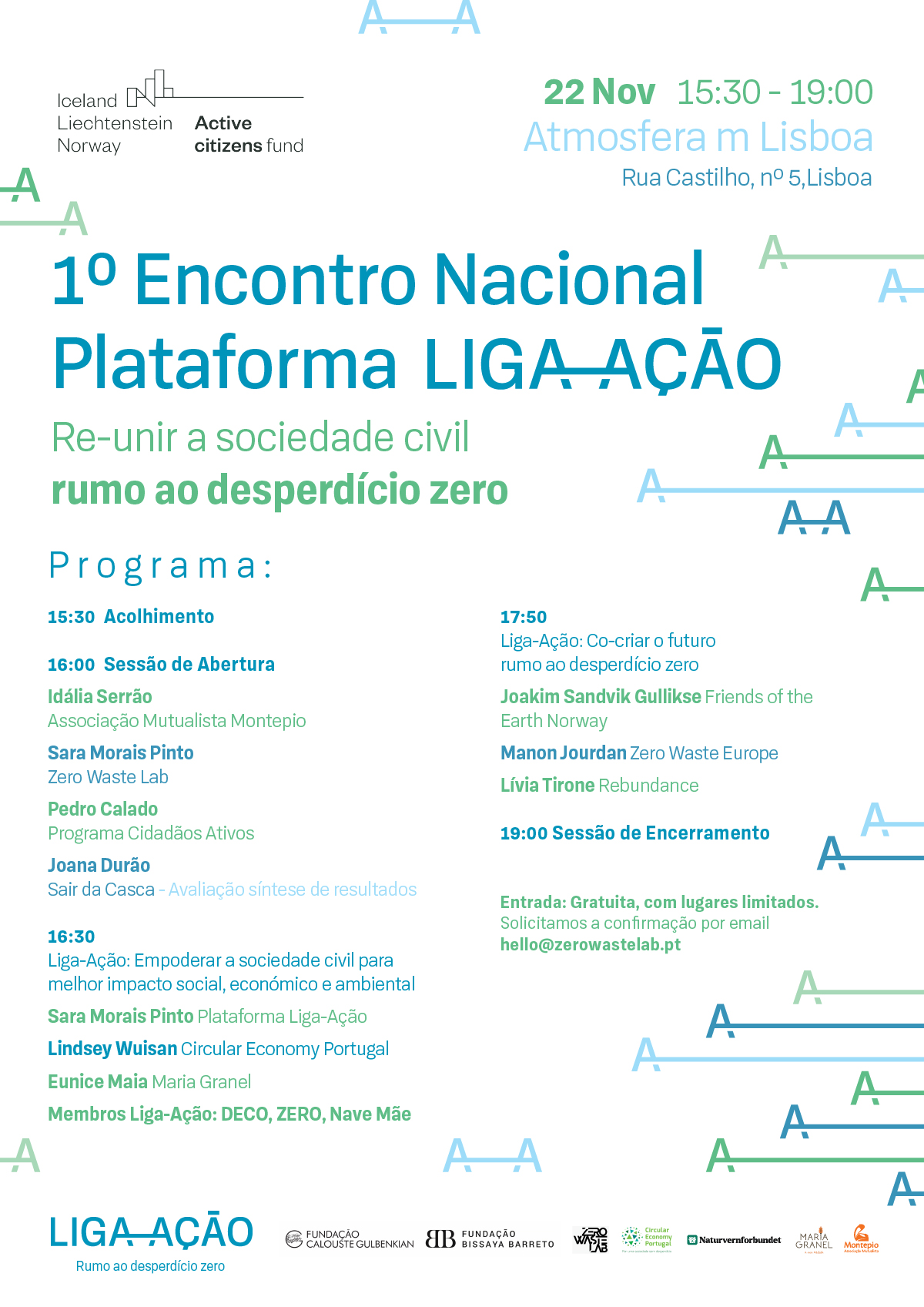 Por ocasião da celebração do 1.º aniversário da Plataforma Liga – Ação – Rumo ao Desperdício Zero, o espaço atmosfera m Lisboa acolhe, a 22 de novembro, entre as 15h30 e as 19h00, um encontro que assinala a presença online da Liga – Ação – Rumo ao Desperdício Zero, uma comunidade digital com de 400 membros ativos em diversas áreas ligadas à sustentabilidade, resiliência e desperdício zero.