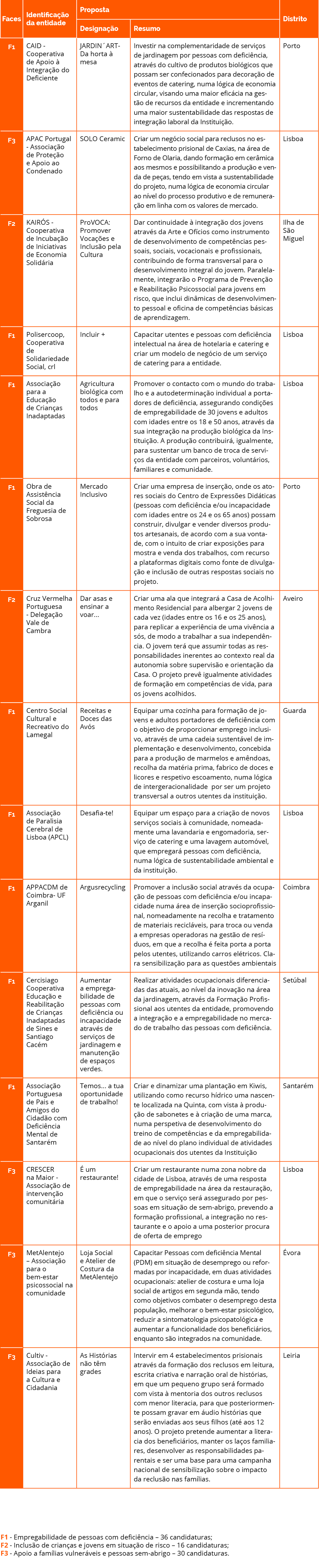 Faces 1) Empregabilidade de pessoas com deficiência – 36 candidaturas;