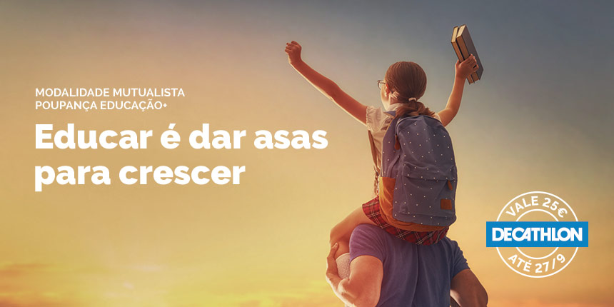“Educar é dar asas para voar” é o mote que inspira a comunicação da nova Poupança Educação+, modalidade de prazo certo que surge associada à oferta de 25€ em cartão presente Decathlon.