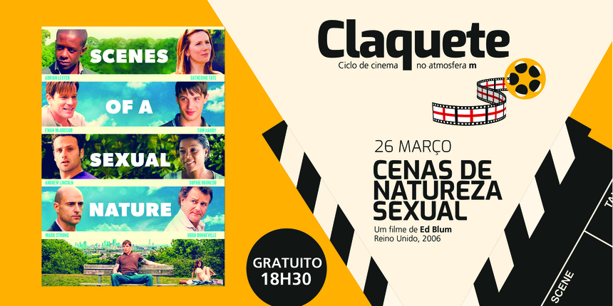 A 5.ª edição de Claquete – Ciclo de Cinema no atmosfera m começa a 26 de março, no espaço atmosfera m Lisboa, com a apresentação de “Cenas de Natureza Sexual, de Ed Blum. A sessão contará com a presença do realizador, que participará numa conversa aberta ao público moderada pelo crítico de cinema Rui Pedro Tendinha