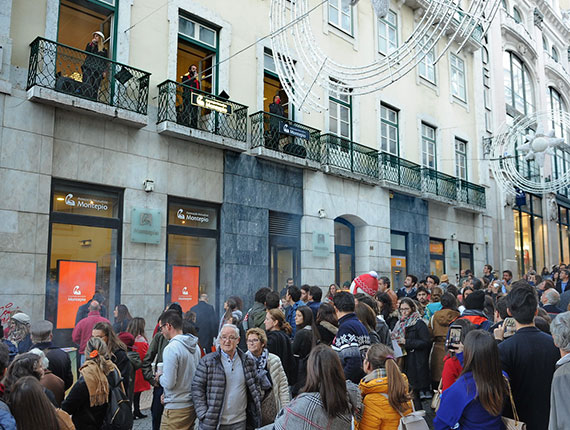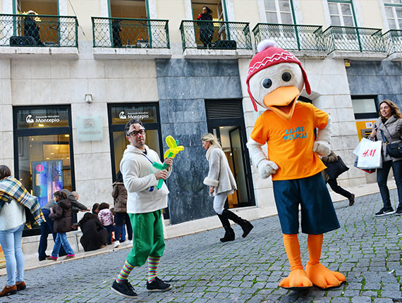 Quem passou pela rua do Carmo no passado sábado, 16 de dezembro, teve oportunidade de usufruir de uma tarde diferente. Pinturas faciais e modelagem de balões para os mais jovens, canções de Natal, castanhas assadas, chá, café e outras iguarias para os adultos, foram algumas das surpresas preparadas pela Associação Mutualista Montepio.