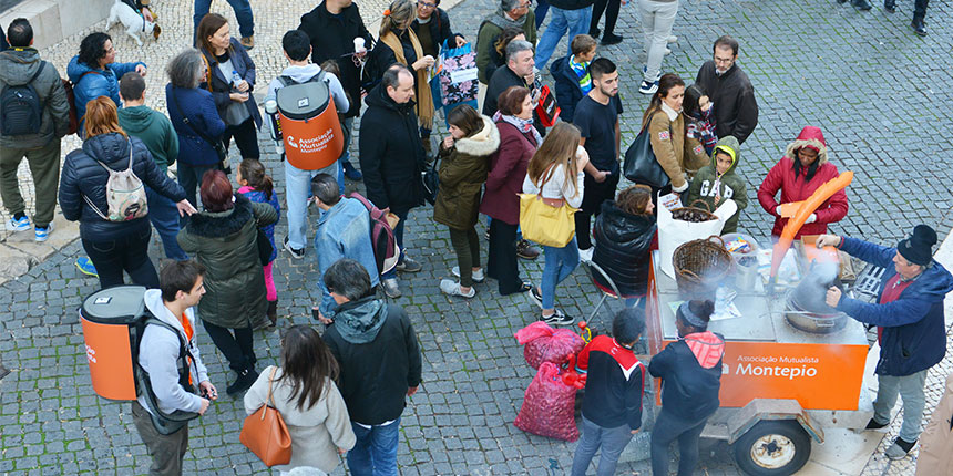 Quem passou pela rua do Carmo no passado sábado, 16 de dezembro, teve oportunidade de usufruir de uma tarde diferente. Pinturas faciais e modelagem de balões para os mais jovens, canções de Natal, castanhas assadas, chá, café e outras iguarias para os adultos, foram algumas das surpresas preparadas pela Associação Mutualista Montepio.