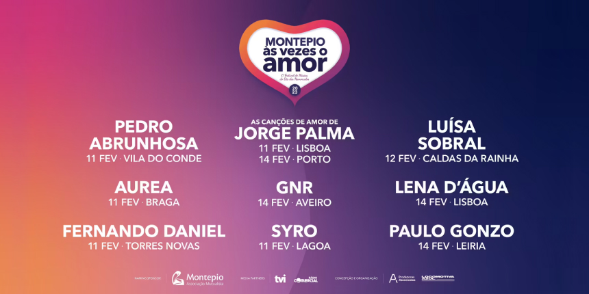 O Festival “Montepio às vezes o amor” está de regresso e nesta 9.ª edição, que se realiza entre os dias 11 e 14 de fevereiro de 2023, há estreias em cartaz e concertos por todo o país. Fevereiro é o mês do amor, do romance e da partilha e marca também o regresso deste festival que celebra estes sentimentos ao som da melhor banda sonora. O elenco desta edição promete aquecer os corações apaixonados e relembrar o público da importância da partilha de momentos especiais com aqueles que mais amam.