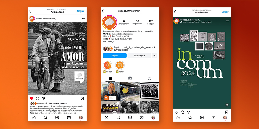 Mas o facto de as redes sociais serem, atualmente, uma parte vital no relacionamento entre amigos e família e empresas e clientes, o Montepio Associação Mutualista decidiu lançar a página de Instagram @espaco.atmosferam que promete trazer conteúdos exclusivos, atualizações em tempo real e uma maior interação com o público frequentador dos espaços de Lisboa e Porto, mas também com afinidade e interesse nas atividades que ali decorrem.