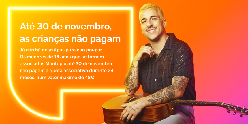 O Montepio Associação Mutualista tem em curso uma ação promocional destinada ao segmento de crianças e jovens, no âmbito da qual, até 31 de dezembro de 2023, oferece a quota associativa mensal a candidatos a associados com idade inferior a 18 anos, por um prazo máximo de 24 meses, o que significa uma poupança até 48€. Importa salientar que a oferta da quota associativa mensal não pode ultrapassar o limite máximo de idade, ou seja, os 18 anos, pelo que termina ao atingir o limite que primeiro ocorrer: seja o prazo de 24 meses ou a idade de 18 anos.