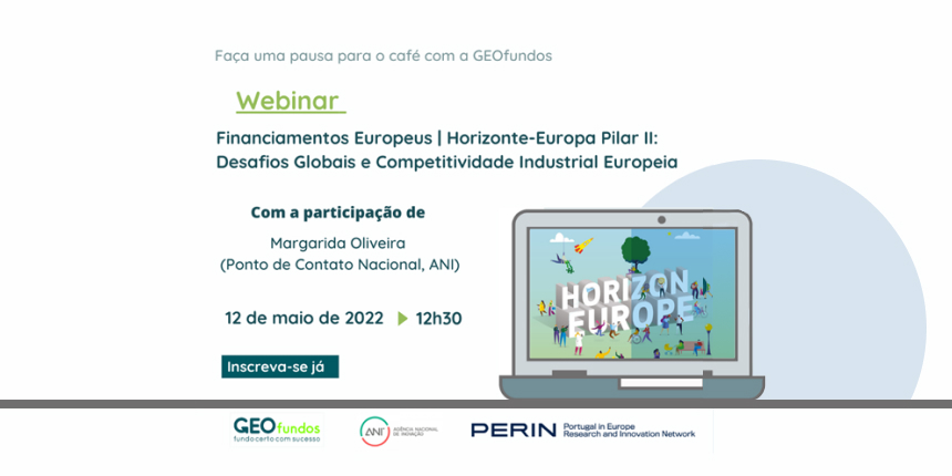 A GEOfundos, plataforma desenvolvida com o apoio da Fundação Montepio, realiza, no próximo dia 12 de maio, novo webinar, desta feita dedicado ao tema “Financiamentos Europeus | Horizonte-Europa Pilar II”.