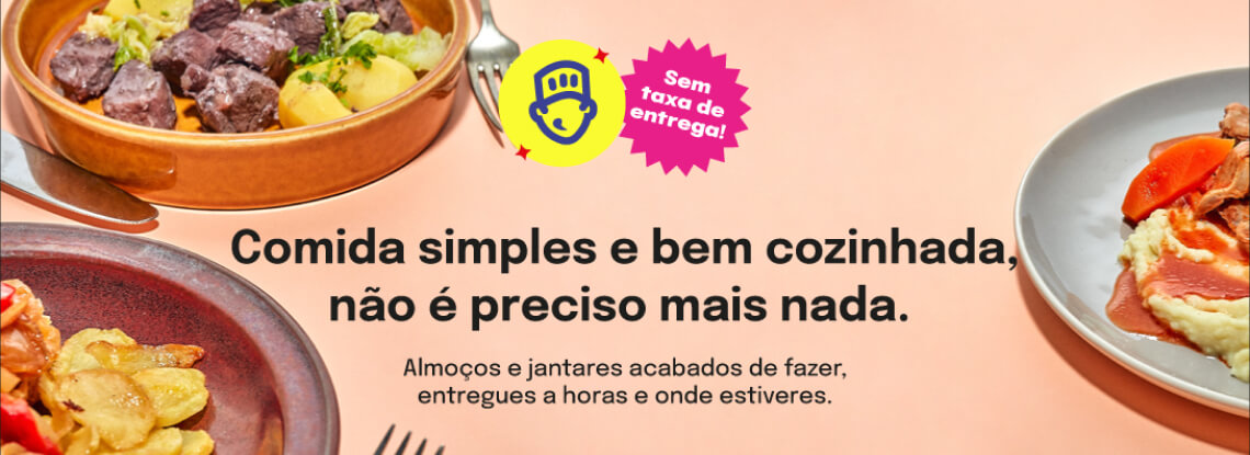 Encomende o almoço ou jantar acabado de fazer de 2ª a 6ª feira, sem taxa de entrega e beneficie dos descontos exclusivos.