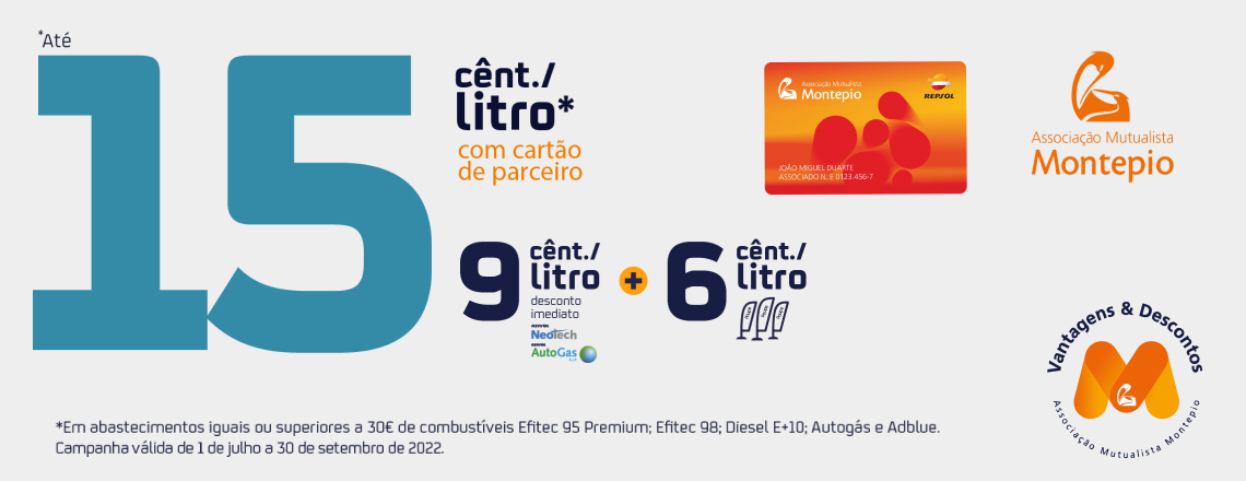 Com o Cartão Montepio Associação Mutualista Repsol é certo que vai poupar mais. Porque além do habitual desconto de 6 cêntimos, este cartão permite acumular outras vantagens em vigor nas estações de serviço aderentes.