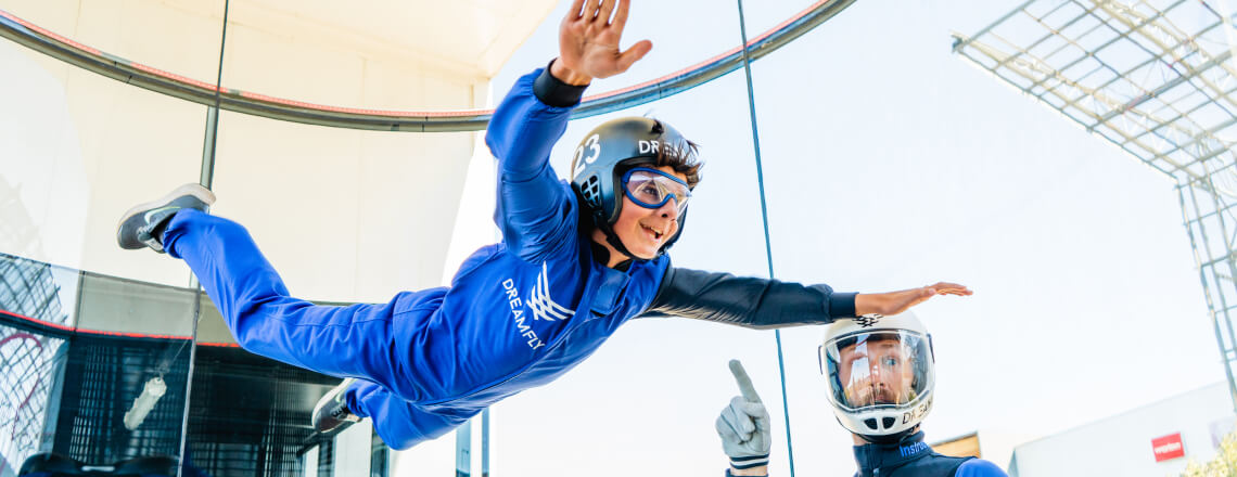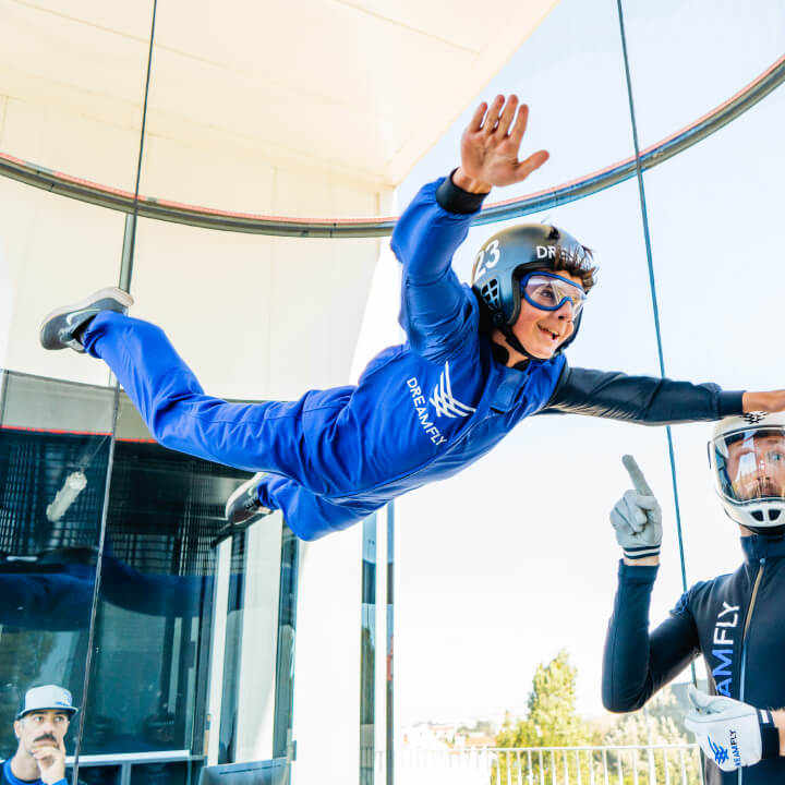 Viva uma experiência inovadora e cheia de adrenalina com a DreamFly. Os voos de Indoor Skydiving no túnel de vento equivalem a um salto de 4 000 metros. Experimente o que é a queda livre com a segurança de um ambiente controlado.
