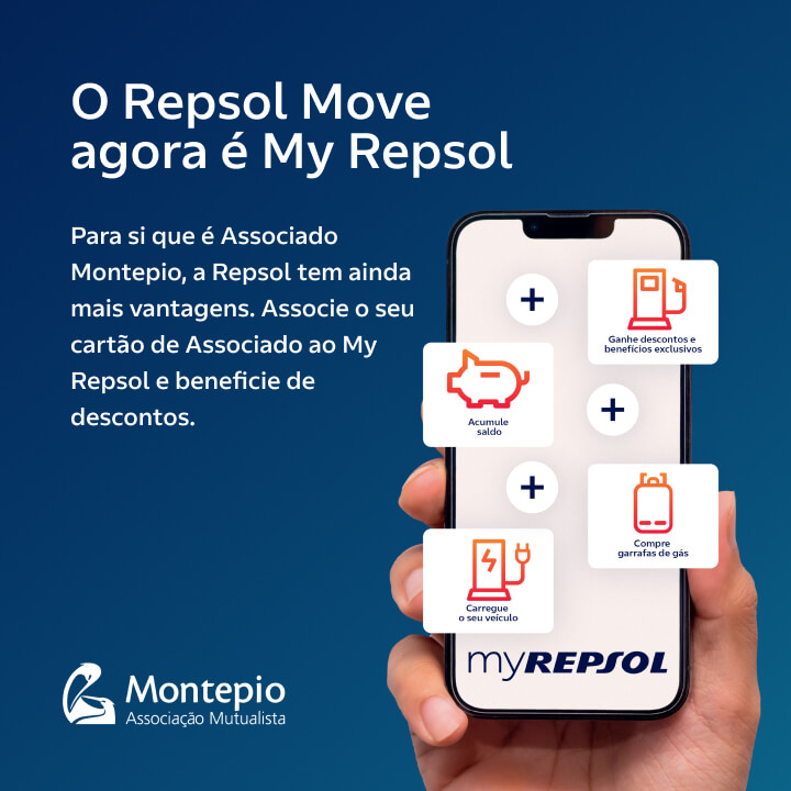 Os associados titulares do cartão AMMontepio_Repsol podem apresentar o cartão digital, disponível na APP da Associação Montepio, nas estações de serviço Repsol aderentes.