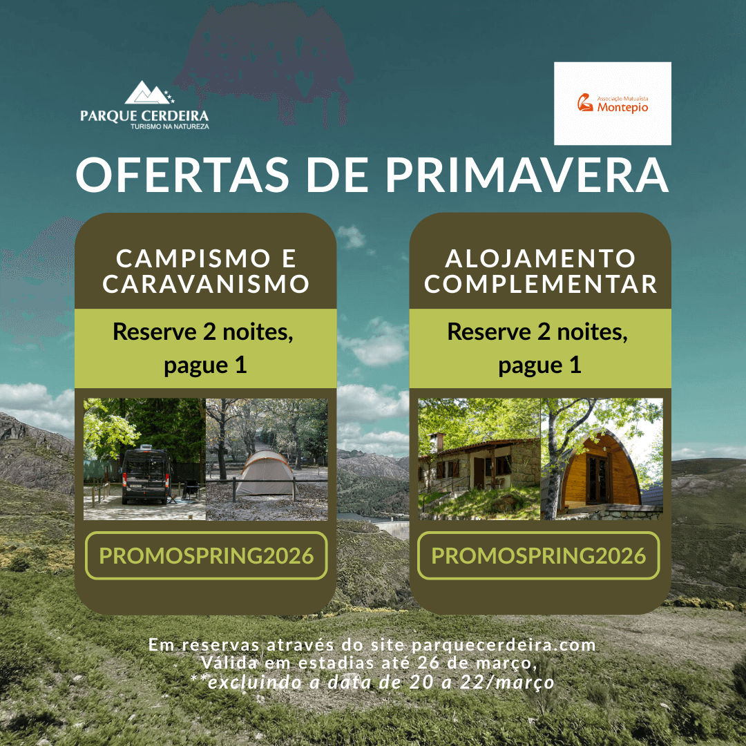 - A campanha é válida até ao dia 1 de novembro, para estadia em alojamento complementar no Parque Cerdeira;