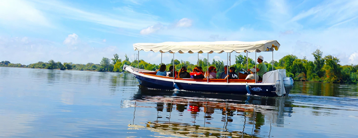 Entre caniçais e ilhas fluviais, surgem ninhos escondidos, crias recém-nascidas e adultos atarefados a cuidar dos seus filhotes, num ciclo de vida que se renova a cada curva do percurso. O silêncio é apenas interrompido pelo canto das aves e pelo deslizar da embarcação sobre a água.