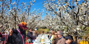 Seguiu-se um percurso tranquilo de minibus até ao Fundão, por estradas panorâmicas que atravessam a Serra da Gardunha. Entre cerejeiras em flor, a paisagem pintada de branco ofereceu um cenário quase poético, vivido entre fotografias, comentários entusiasmados e momentos de contemplação.