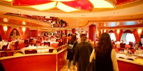 O navio conta, ainda, com dois luxuosos restaurantes, o L’Ibiscus, e o Villa Borghese e os participantes surpreenderam-se também com a visita ao Savannah Bar – caracterizado pelo seu estilo animalprint–, o Casino Palm Beach e o magnífico Teatro Covent Garden, onde se realizam os mais variados espetáculos ao longo da estada dos passageiros. O Centro Desportivo não passou despercebido, contendo cinco fantásticas piscinas e até de uma pista de corrida, além de um moderno ginásio.