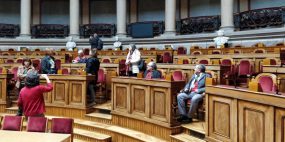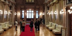 Foi ainda possível visitar a Sala das Sessões, um anfiteatro de planta semicircular onde decorrem, semanalmente, as sessões plenárias da Assembleia da República e onde se sentam, da esquerda para a direita e voltados para a tribuna presidencial, os 230 deputados do Parlamento.