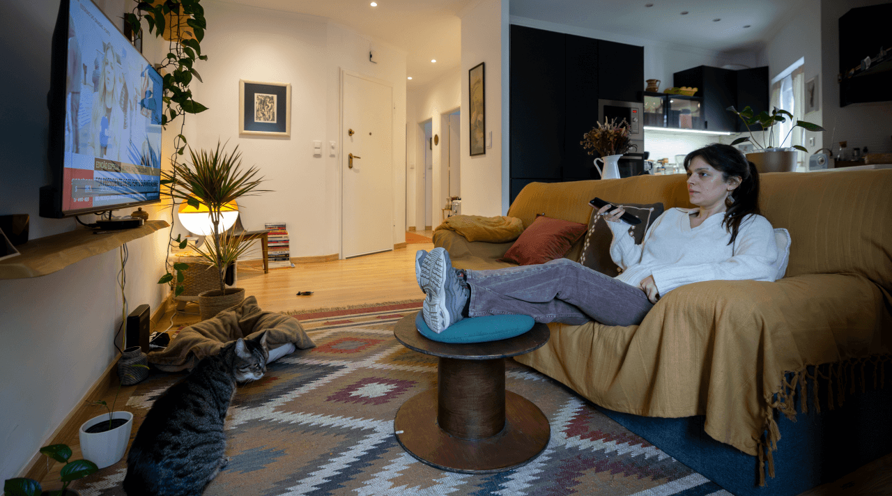 Ainda que ter uma casa só para si seja mais exigente do ponto de vista financeiro, Sara Calado teve esse objetivo no horizonte desde que saiu de casa dos pais, no concelho de Santiago do Cacém, no Alentejo. Nos primeiros anos em Lisboa, como estudante universitária, chegou a partilhar casa com 20 pessoas. Em 2018, já a trabalhar na área do jornalismo, mudou-se sozinha para um T2 na zona de Arroios, também no centro da cidade. “Precisava de dar este passo. Ao fim de seis anos, consegui finalmente encontrar um espaço só para mim, por um preço razoável (450 euros, incluindo as despesas de água e luz)”, recorda. Foi nessa fase da vida que se tornou freelancer. “Em 2021, decidi explorar outras áreas profissionais que me permitissem ter um rendimento para poder fazer um crédito à habitação. Foi assim que me tornei consultora”, lembra.