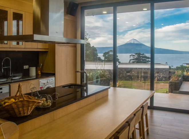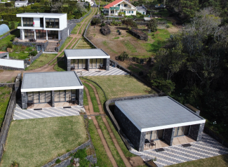 No terreno da Urzelina, as primeiras construções incluíram a casa onde Miguel e Lénia vivem com o filho recém-nascido, bem como os quartos destinados ao turismo: seis T0, um conceito que combina hostel com o conforto do quarto típico de hotel. Cada unidade é independente, mas existe uma zona comum com cerca de 80 metros quadrados equipada com cozinha, sala de estar e área de refeições. “Queremos que os visitantes estejam todos juntos e troquem experiências. Ligamos pessoas”, explica Miguel Sequeira.