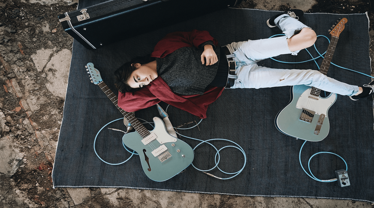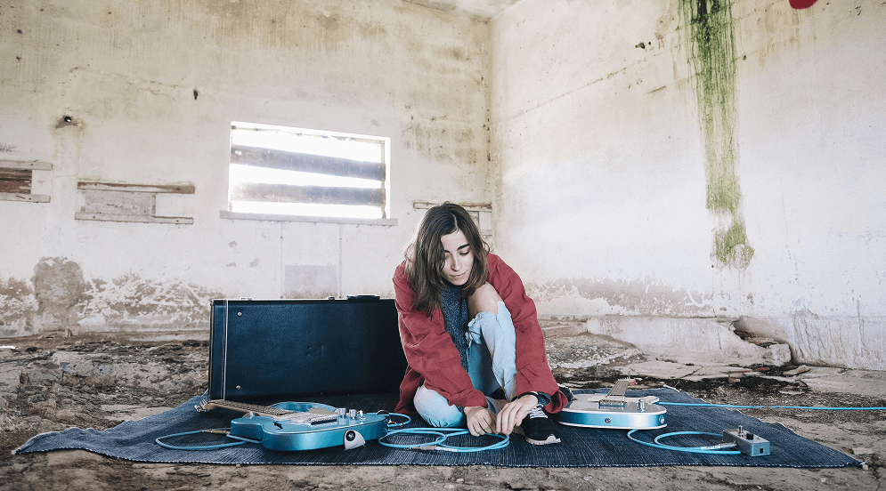 Inês Matos, aka Inóspita, posa para uma foto de promoção do álbum “E agora, Inóspita?” A compositora domina a guitarra elétrica como poucos da sua geração