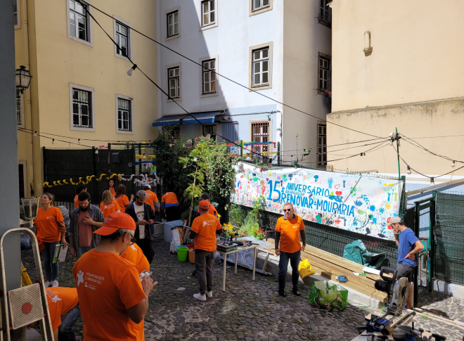 Fazer parte da sociedade implica viver e conhecer as suas fragilidades. Ciente desta noção de pertença, o Grupo Montepio cumpre desde 2007 o seu programa de voluntariado corporativo, colaborando com diferentes organizações do país através de uma bolsa de 1 300 voluntários. No Dia do Voluntariado deste ano, a 12 de maio, foi a vez de 23 trabalhadores doarem o seu tempo à Renovar a Mouraria. Arranjaram floreiras, montaram uma cobertura para sombra, plantaram novas espécies, construíram abrigos para insetos e ninhos e produziram material para o arraial de Santo António no bairro.