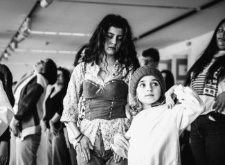 Maria Rita Malheiro, de 16 anos, vem todas as semanas da Amadora para o bairro do Castelo alimentar este processo. Começou a fazer teatro no TG aos 8 anos, incentivada pelos pais, depois parou para se dedicar aos estudos (tem o Curso Profissional de Teatro, do Instituto para o Desenvolvimento Social) e no ano passado regressou. Apesar da pausa, as coisas que lhe disseram no clube quando era criança cresceram consigo. “No teatro, as pessoas puxam muito umas pelas outras e aprende-se a viver em sociedade. Nos exercícios que fazemos precisamos sempre do outro, nada se faz sozinho. Hoje percebo o quão importante foi para mim estar com pessoas mais velhas quando era criança, ouvir outras perspetivas. Passados todos estes anos, é a minha vez de fazer o mesmo com os mais novos e de voltar a sentir isso a acontecer comigo. Todos os sábados, levo daqui uma lufada de ar fresco”, relata.