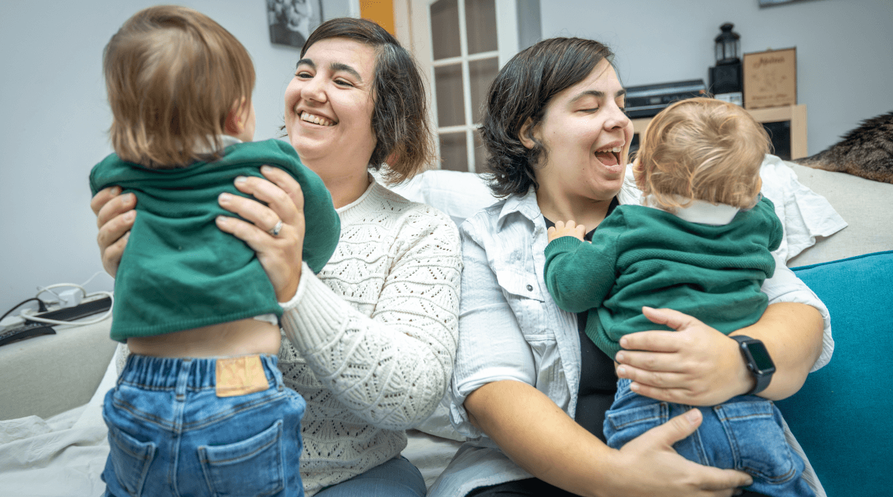 Tinham ideais de família muito diferentes quando se conheceram e começaram a namorar. Raquel queria casar e ter filhos, Margarida não. “A coisa começou a ficar séria e lá a convenci a ter filhos”, conta Raquel Margato, de 33 anos, que trabalha como real time analyst. Pelo meio desta aventura que, desde outubro de 2022, com o nascimento dos gémeos, Mateus e Gabriel, se escreve a quatro, Margarida teve uma oportunidade de trabalho na sua área de formação — anatomia patológica — no Luxemburgo. Com a situação económica a deteriorar-se em Portugal, Raquel, que tem formação na área da educação, decidiu acompanhá-la. “Estávamos juntas há ano e meio e eu não queria abdicar da nossa relação”, conta. Ainda assim, demorou oito meses a encontrar trabalho. E não se deu particularmente bem no país, por isso, quando chegou o momento de serem mães, voltaram a Portugal.