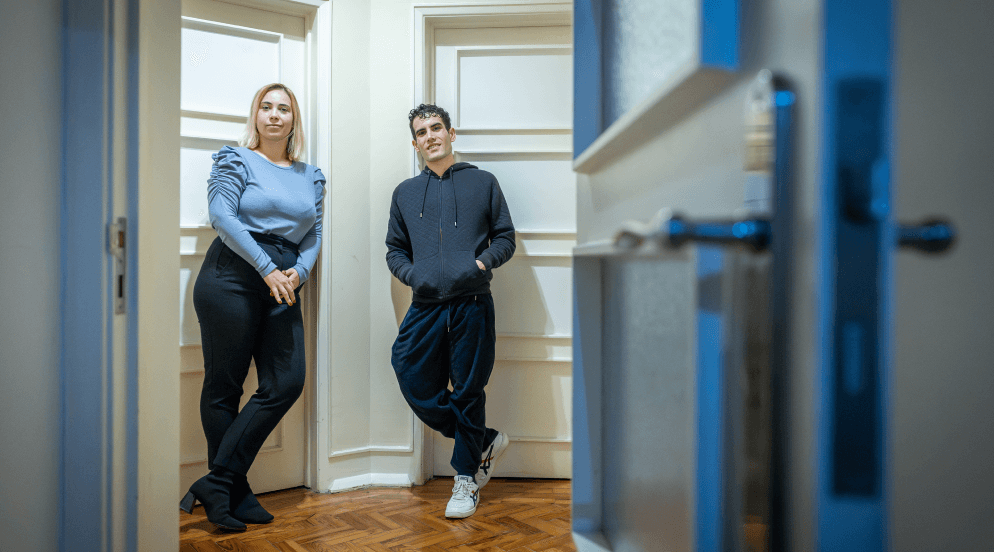 A advogada Patrícia Cachapa (31 anos) e o jornalista Pedro Oliveira (25 anos) não se conheciam antes de começarem a partilhar casa. Vivem com mais duas pessoas, em Lisboa